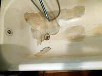Если ванна реставрировалась ранее, старое покрытие нужно ПЕРЕ ЗАЧИСТИТЬ. Иначе новый слой повторит все существующие неровности, а в будущем может начать отслаиваться.